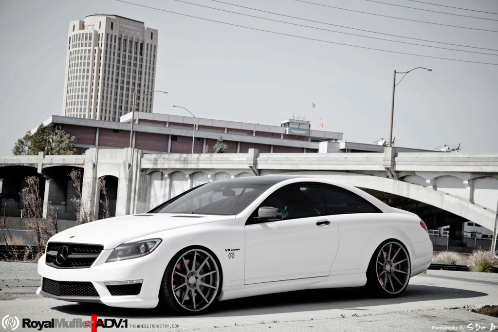 Подоспела схожая серия фотографий, однако – на этот раз героем фотообзора стал Mercedes-Benz CL 63 AMG. Для этого проекта были использованы трехкомпонентные диски ADV10 из кованого алюминия. Размер передних дисков - 22×9.5 дюймов, задних - 22×11 дюймов. Они выполнены в зачищенном вороненном цвете со срединой титанового цвета.
